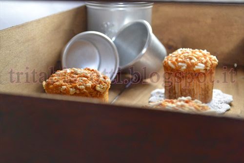 Versare il composto in stampini riempiendoli per 3/4, cospargerli con granella di zucchero ed infornare il tutto a 180 per 30 minuti.